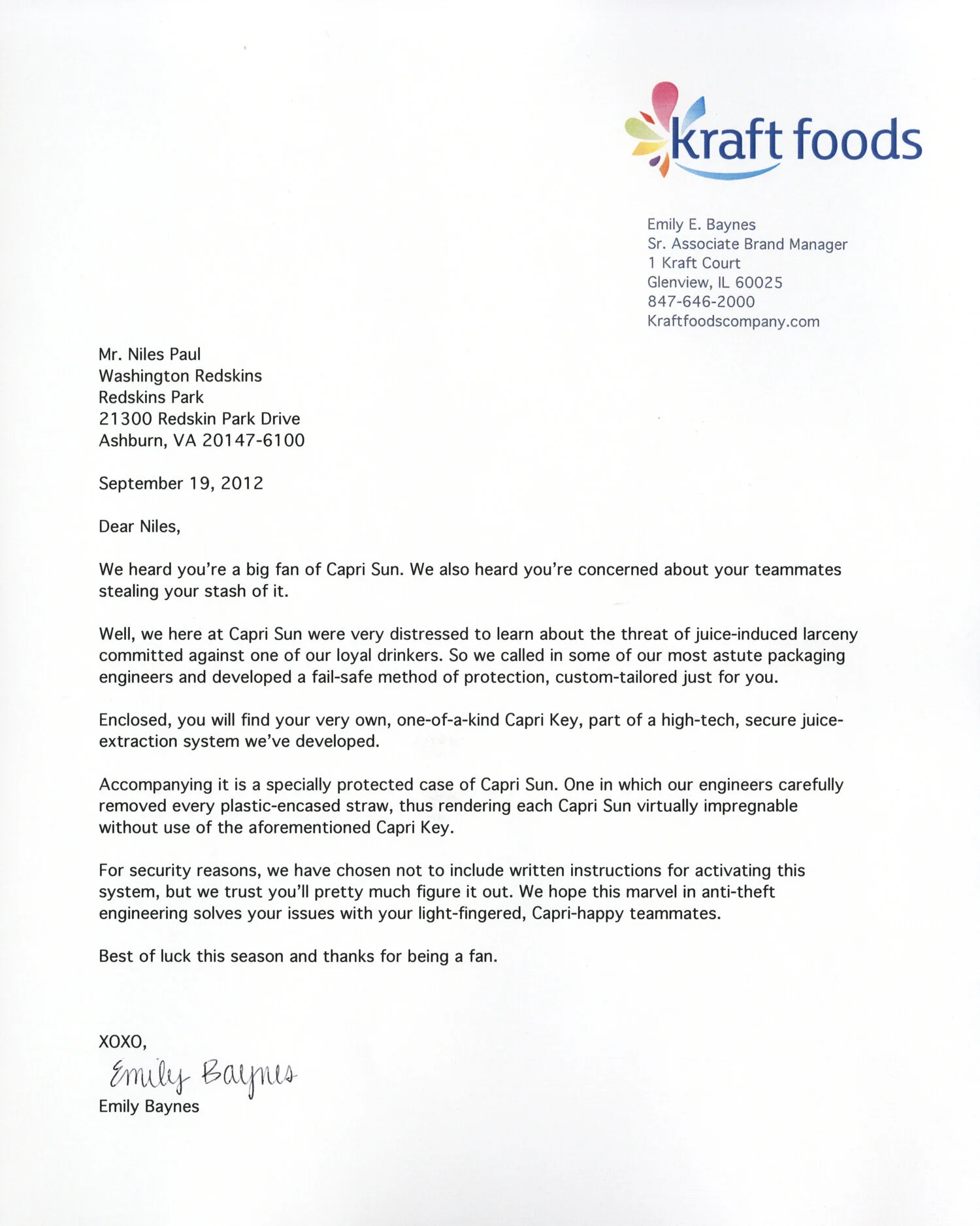 Washington Commanders tight end Niles Paul went on record stating that he was afraid to bring his favorite drink Capri Sun to training camp because his teammates would steal it. Well, we couldn't sit by and allow this to happen so we created a "high-tech juice extraction system" for him. When it was delivered to him at the Redskins facility, a reporter happened to be there and the story of the Capri Key took off appearing in NPR, USA Today and Deadspin.